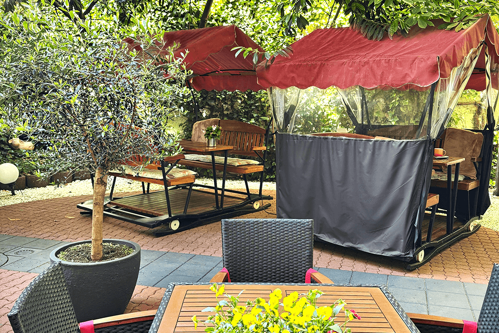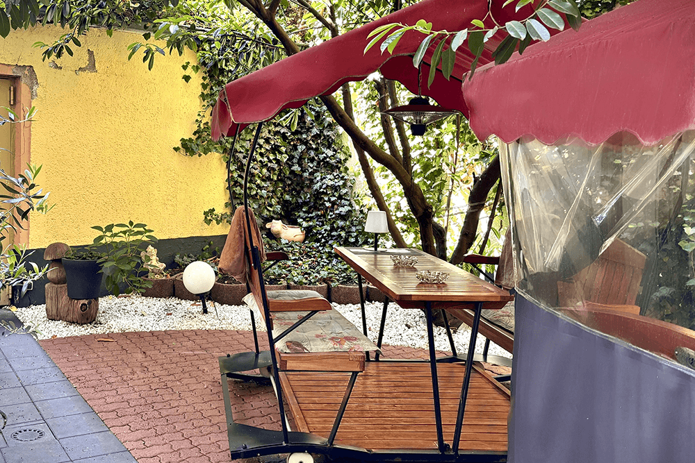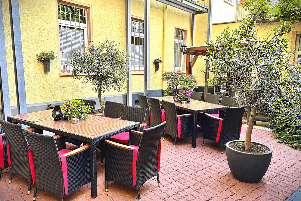 Our green inner courtyard is an inviting place for a well-deserved break on sunny and rainy days. Enjoy the pleasant idyll in the morning at breakfast or in the evening with a glass of wine or an ice cold beer.